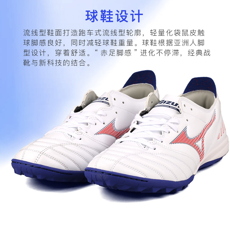 Mizuno/美津浓WAVE CUP TF男子碎钉运动比赛袋鼠皮里瓦尔多足球鞋